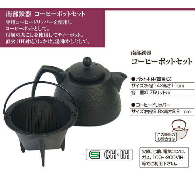 | ■商品番号■60772 IH対応南部鉄器 コーヒーポットセット0.75L |