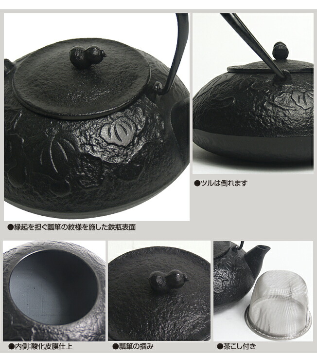 | ■商品番号■60890 南部小鉄瓶 瓢(ひさご黒)0.5L |
