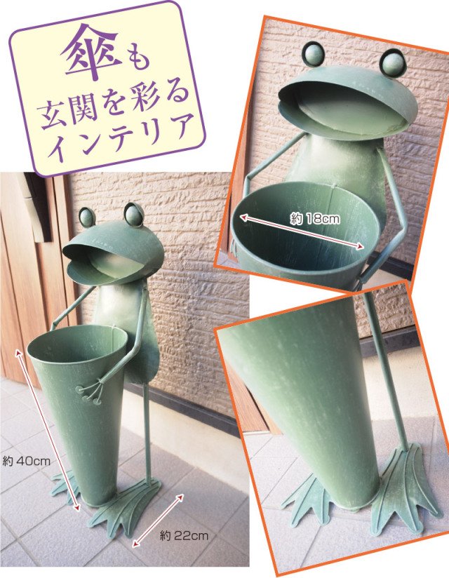 TOPガーデニング エクステリア ブリキのジャンボカエル 傘立て 価格: ¥5,680 (税込) 予約期間: 数量: 個 在庫: 在庫切れ 在庫 在庫切れ 返品についての詳細はこちら ■商品番号■62527 ブリキのジャンボカエル傘立て サイズ 幅23×奧行27×高さ64cm(ポット:直径18×深さ40cm) ●重さ:1.5kg 材質 ブリキ